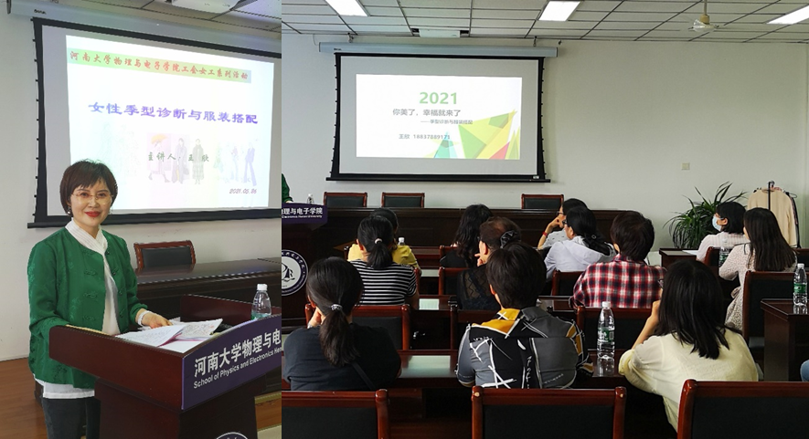 工会自年初以来,开展以“爱生活·知性美·与健康同行”为主题的女工系列活动。继三月春日游园亲子活动之后,5月26日,院工会邀请专业人士王欣、王一两位女士,在学院A313会议室分别作了“女性季型诊断与服装搭配”与“插花艺术与花艺设计”两场专题讲座。