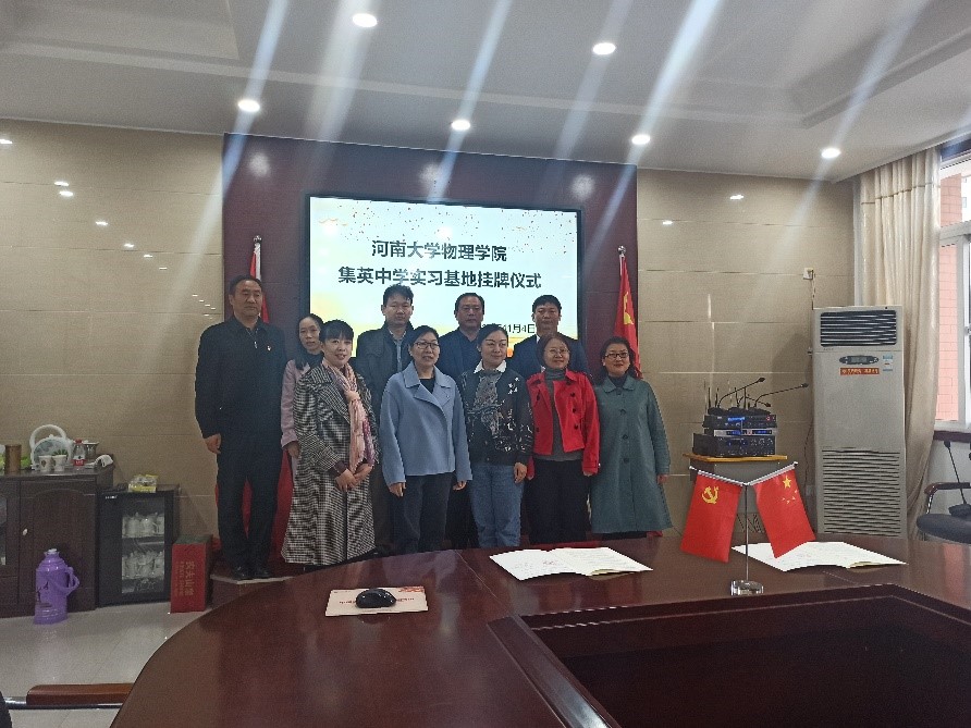 举行共建教学实习基地协议签约暨挂牌仪式。集英中学校长万昭岭、书记汤孝华、副校长陈慧娟、副校长张妍、副校长史俊明、物理组组长罗颖老师、副院长李新营、物理系主任李银丽、大学物理教研室主任杜明荣出席了签约授牌仪式。