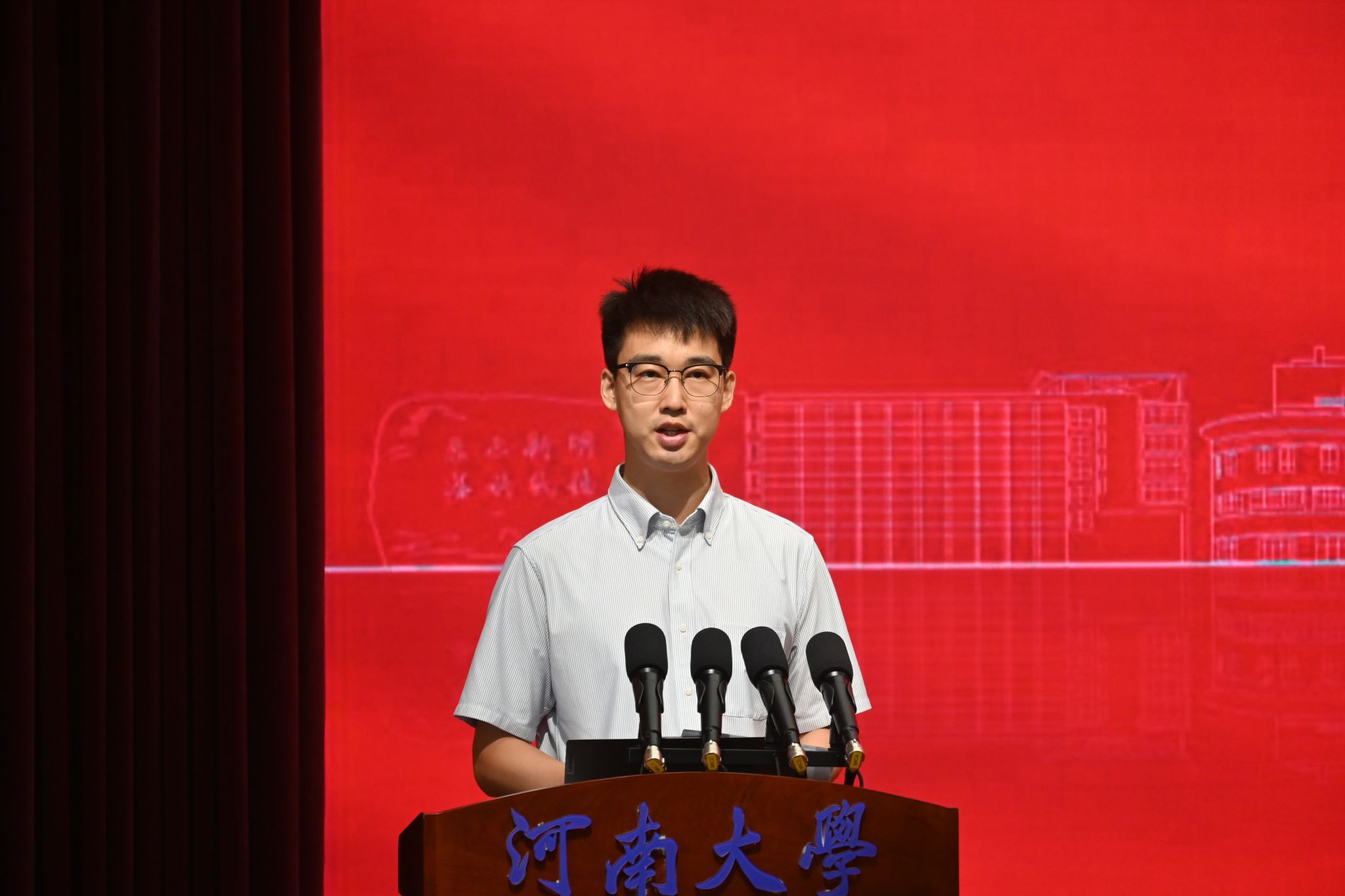 典礼结束后,学院党委书记张慧以《坚定信念 志存高远 以青春之我勇当时代先锋》为题,为全体新生讲授开学第一堂思政课。他围绕伟大建党精神、抗战精神、“两弹一星”精神、红旗渠精神、改革开放精神等中国共产党人精神谱系,结合学校百年办学历史和学院发展实际,引导新生深刻理解个人成长与国家命运、民族复兴之间的紧密联系。他鼓励新生以“自信、拼搏、开放、创新”的新河大精神为指引,胸怀“国之大者”,在学习实践中锤炼过硬本领、在创新发展中勇担时代使命,将青春奋斗融入党和人民事业,为实现中华民族伟大复兴贡献智慧与力量。