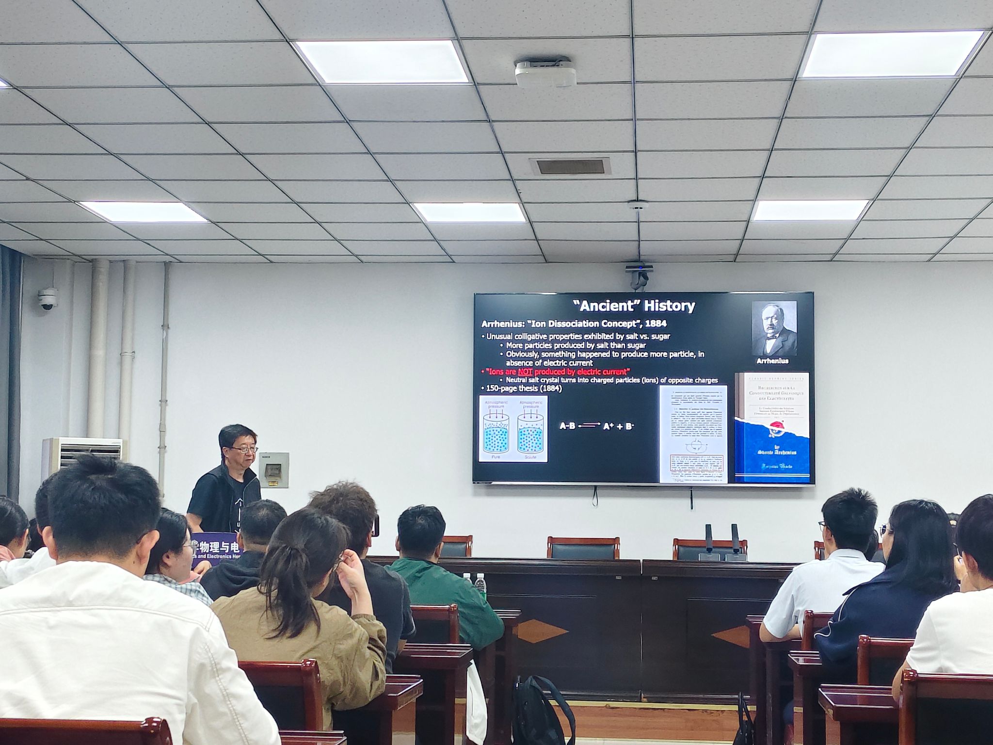 A313报告厅,为师生带来题为“电解质,界面,界相及分子宇宙—从基础科学到AI赋能创新”的专题报告,现场座无虚席,交流气氛热烈。