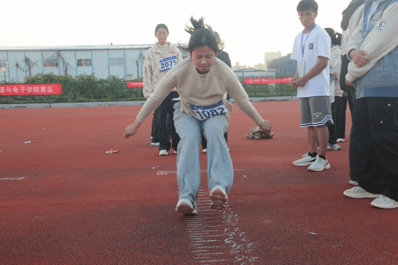 运动场上,裁判、志愿者、运动员和观众心怀满腔热忱,同心聚力。径赛跑道上,运动员们蓄势待发,发令枪响后全力冲刺,用速度诠释激情;接力赛道上,队员们默契交接,传递着速度与信任。田赛场地内,投掷选手凝神蓄力,实心球划出的抛物线尽显力量与技巧;跳远健儿助跑、腾空、落地,沙坑中扬起的沙尘定格下跃动的瞬间。赛场之上呐喊声、加油声此起彼伏,运动员们用汗水与拼搏共同谱写秋日赛场的动人篇章,诠释着永不言败的体育精神。