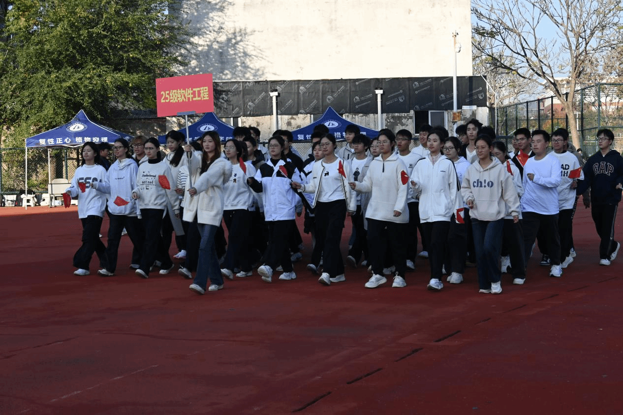 2025年秋季运动会在金明校区东操场顺利举行。学院党委书记张慧、党委副书记刘寒冰、副院长李新营、大学物理党支部书记阴化冰、团委书记周焕及各级辅导员出席开幕式。