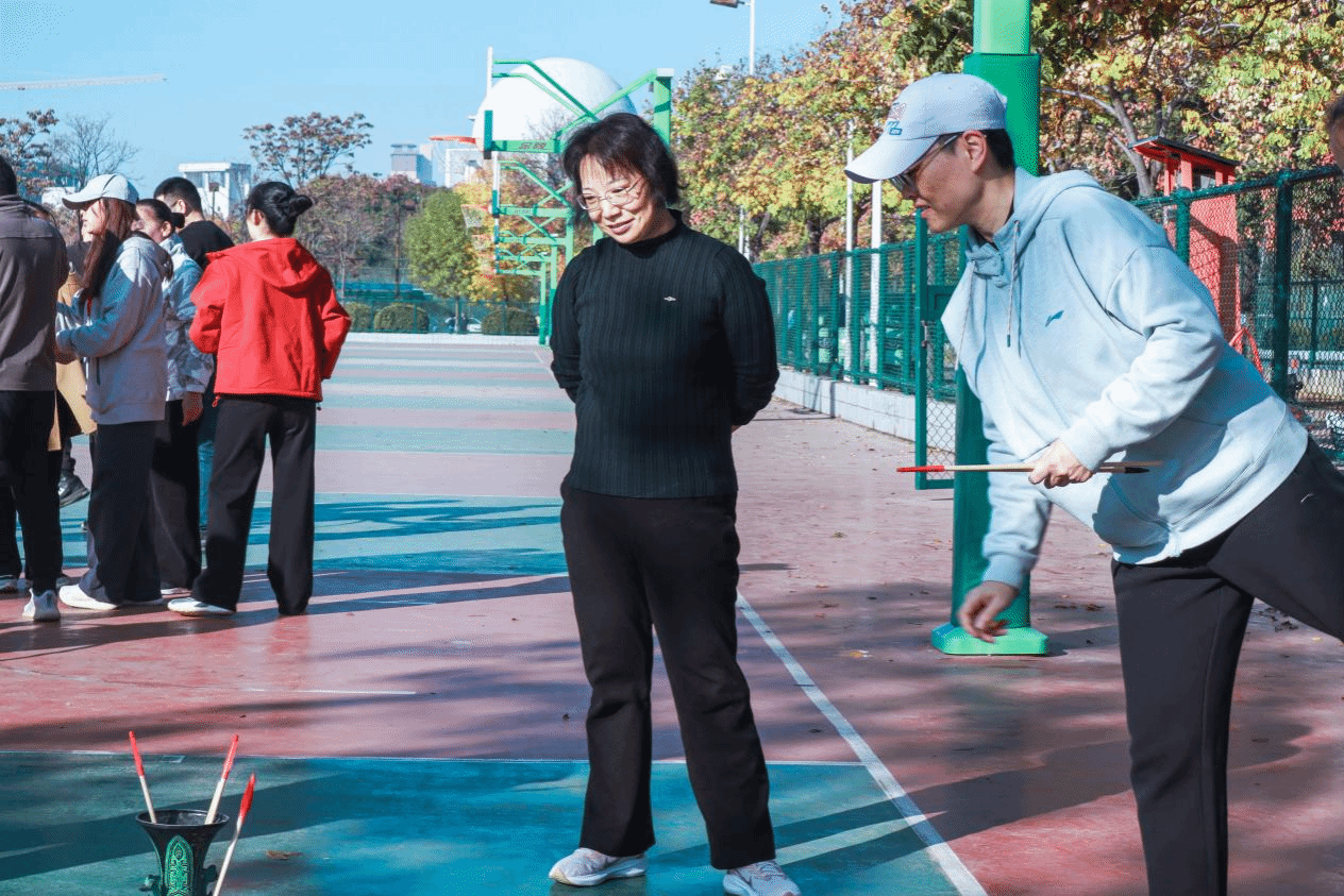 赛场精彩不止于学生。学院教职工们在踢毽子、跳绳、投壶等趣味项目中各展其能。他们全情投入,笑语不断,在轻松氛围中展现课堂之外的别样风采践行“健康运动,快乐工作”的理念。