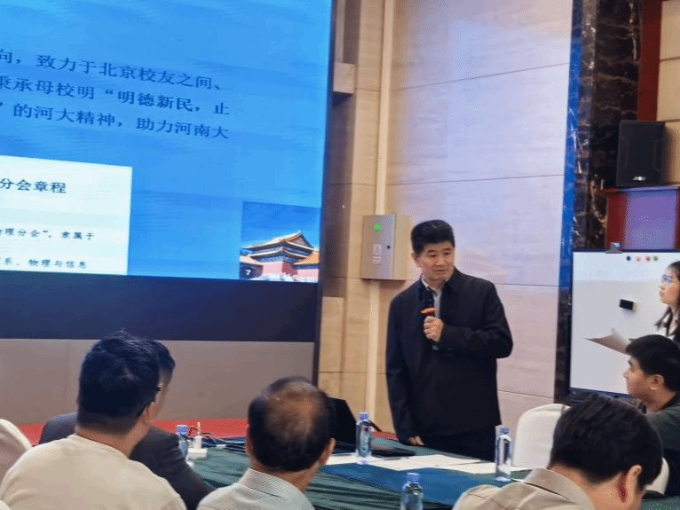 新任会长毛京军作表态发言。他对母校、校友会及全体校友的信任表示感谢,深感使命光荣、责任重大。他表示,新一届理事会将传承优良传统,重点做好三方面工作:一是以情聚人,完善联络体系、常态化开展联谊,筑牢校友温暖纽带;二是以智赋能,立足物理学科特色搭建学术交流与资源互助平台,助力母校学科建设与人才培养;三是以行传魂,传承 “明德新民,止于至善” 校训,彰显河大物理人担当与风采,全力将分会打造成在京校友的精神港湾与发展家园
