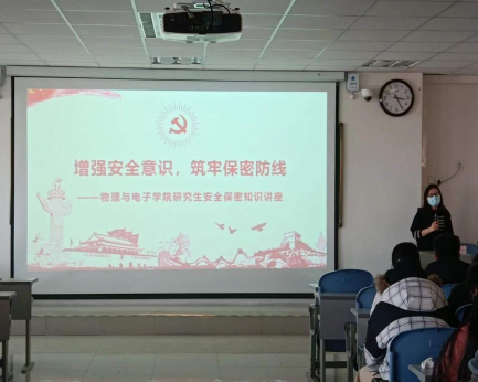 研究生辅导员凌兰雨做“增强安全意识,筑牢保密防线”安全保密知识讲座,组织观看安全保密知识的视频,深化了研究生“人人都是保密员”、“窃密就在身边,泄密就在瞬间”的安全保密意识,为坚决杜绝失泄密,筑牢安全底线起到了积极的教育和警示作用,并随堂进行了保密知识测验。