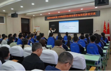 阳春三月,春光明媚、春意盎然。3月9下午,由麻豆在线继续教育办公室主任向兵带队,省级骨干教师培训团队的50余位教师到开封市第十三中学开展观摩交流参观活动。祁建峰副校长通过纪实短片的形式,向省培班的教师们简要介绍了学校百年的建校历史,厚重的两河文化,“三张名片”的打造及深化,光彩教育的提出及实践,展现了百年名校欣欣向荣、蓬勃发展的壮美画卷。