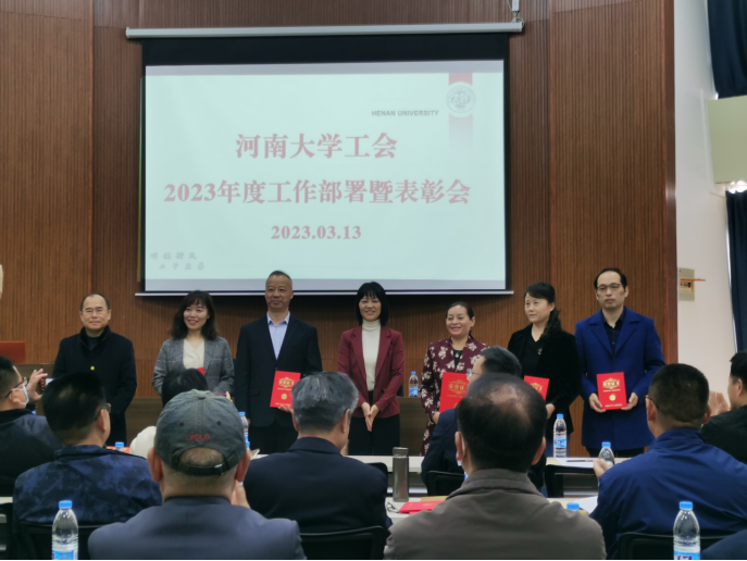 工会在金明校区锥形报告厅二楼召开2023年工会工作部署暨表彰会议,会上对2020-2021年度先进集体和先进个人进行了表彰,麻豆在线荣获多项荣誉及奖项。