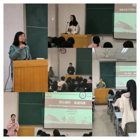 大学物理教工党支部书记康缈介绍了支部概况,并强调本次活动的初衷,倾听学生心声,了解学生诉求,解决学生在生活学习中存在的困难问题。学院党委书记、支部党员王宏华勉励大家要坚定理想、充满自信,并给在座的同学们提出了“高、宽、深”的期望,即眼光要有高度,积极向党组织靠拢,把个人理想追求融入党和国家事业之中;学习要有宽度,积极参加各类实践、创新和文艺活动,具备综合素养;思考要有深度,脚踏实地,用心专研专业知识。