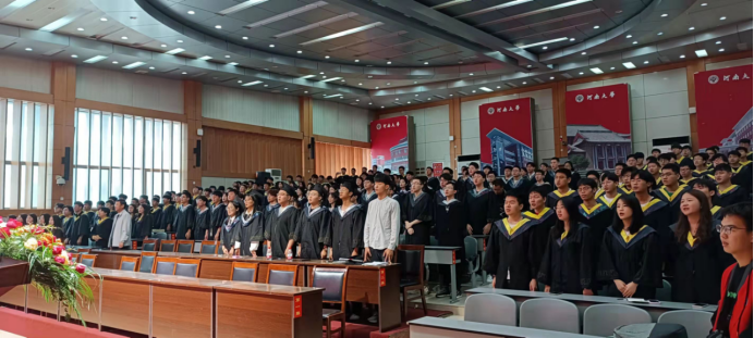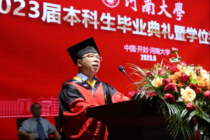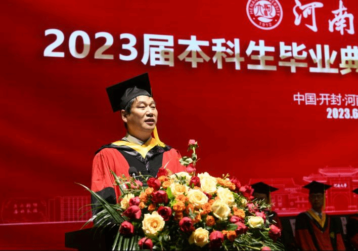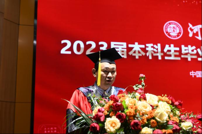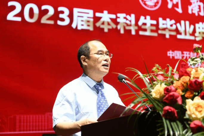 教师代表、河南省首席科普专家戴树玺教授饱含深情地回忆了与同学们相处四年的美好时光,一起探索科学的奥妙和魅力,一起解决各种问题和困难,一起参与各种活动和竞赛,一起见证彼此的成长和进步。并寄语同学们不忘初心使命,始终保持对生活的热情和乐观,牢记社会责任和道德良知,为社会进步和文明发展做贡献。