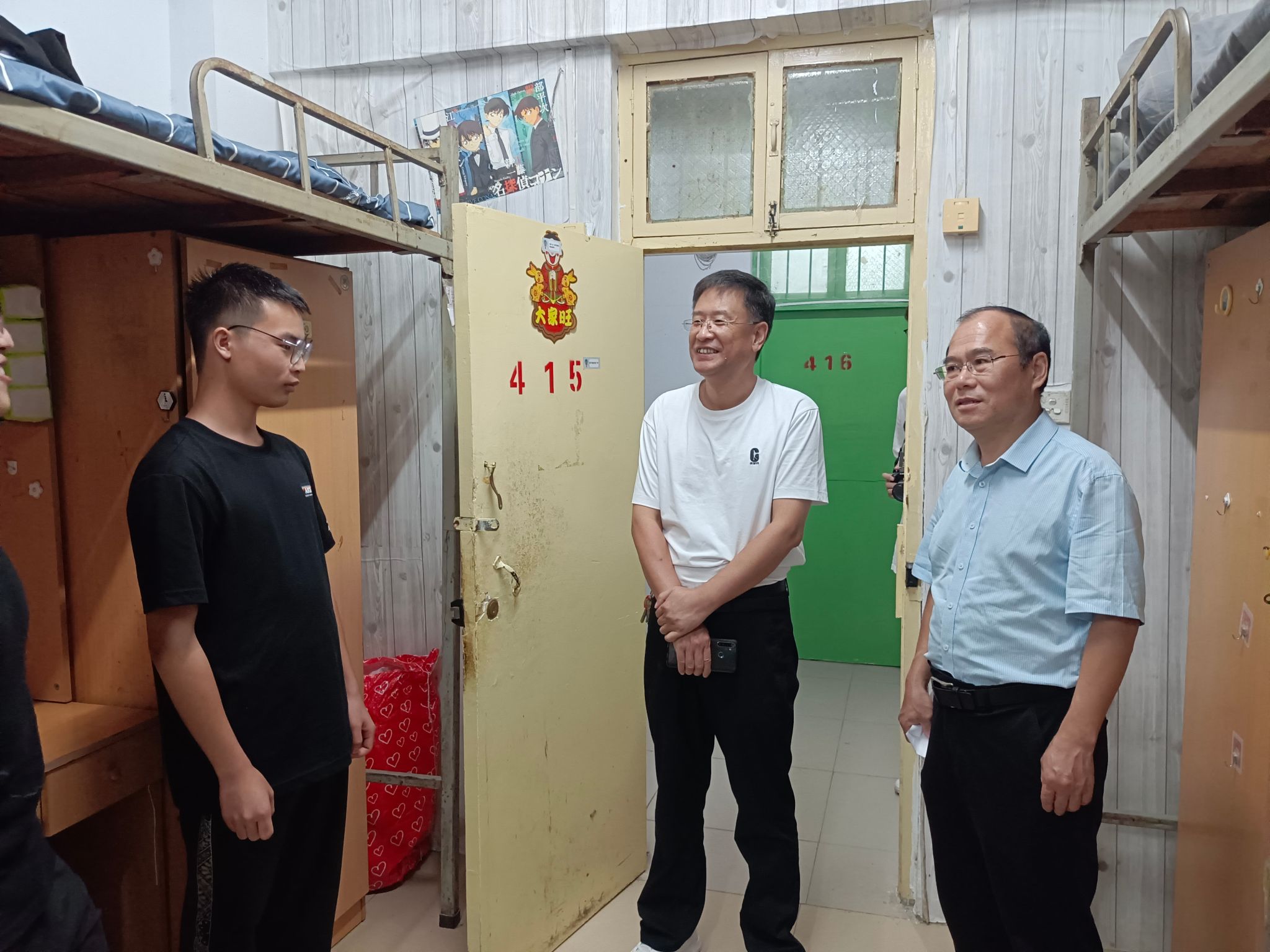 为深入了解麻豆在线新生住宿和生活情况,引领新生尽快适应新生活新环境,9月5日晚,学院党委书记张慧、副书记刘寒冰、副院长魏高明、李新营、刘名果和新生辅导员刘华云一行分别前往华源、南苑学生公寓走访慰问新生。