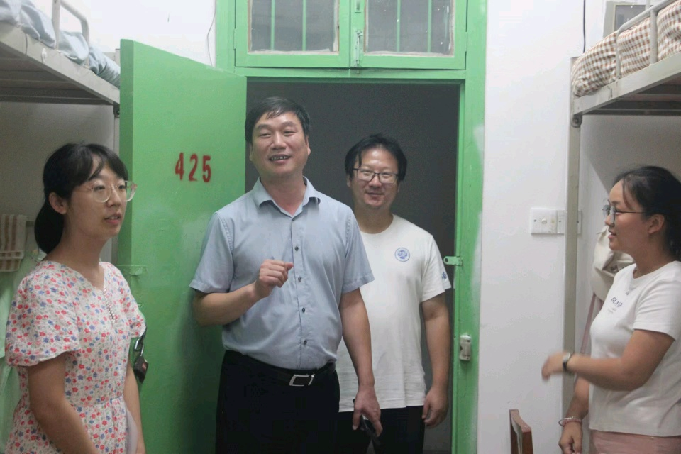 在华苑7号楼男生公寓,刘寒冰嘱咐新生们严格遵守宿舍管理规定,注意宿舍卫生和安全,培养良好的生活作风和行为习惯,营造一个和谐的住宿与学习环境。希望同学们能珍视共同来到物理学院求学的缘分,和睦相处,团结互助,珍惜学习时光,认真学习专业知识,以更加饱满的状态,践行“复性正心,格物致知”院训,在美丽的校园中收获宝贵的财富。