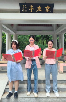 大家来到学院后面的京友亭,进行诗歌朗诵。党员们依次朗诵了李大钊、鲁迅等“五四运动”时期的著名诗歌,诗句激昂、铿锵有力,引人深思。同学们在朗诵时不仅领略到了五四时期青年们的豪情壮志,也体会到了诗歌的力量,进一步激励大家砥砺前行,奋发图强。