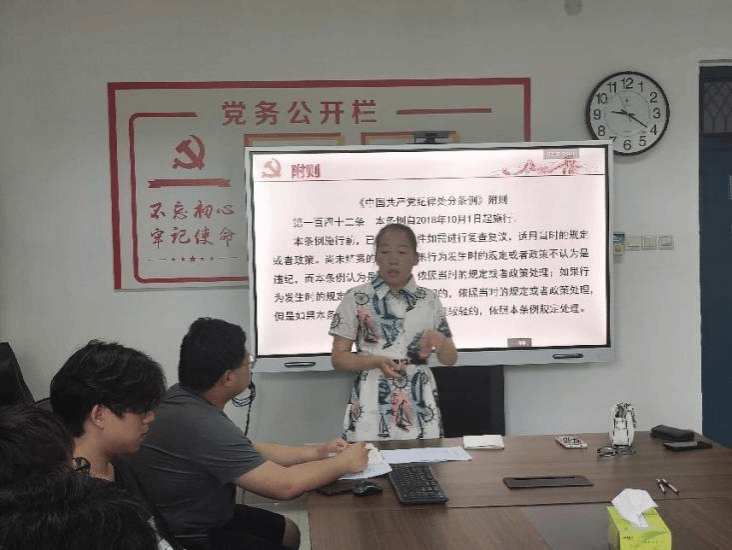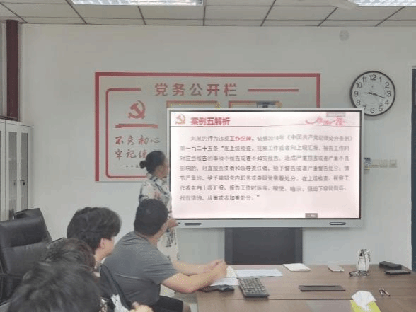 张婷首先对《条例》修订的背景、要点及主要内容和中央八项规定及其实施细则进行了深入浅出的解读和阐述,同时列举并解析了多项违反《条例》的案例,强调党员同志们要从全面从严治党的政治高度重视《条例》的学习,牢记各项廉洁自律的要求和党的纪律底线,学深悟透、学以致用。